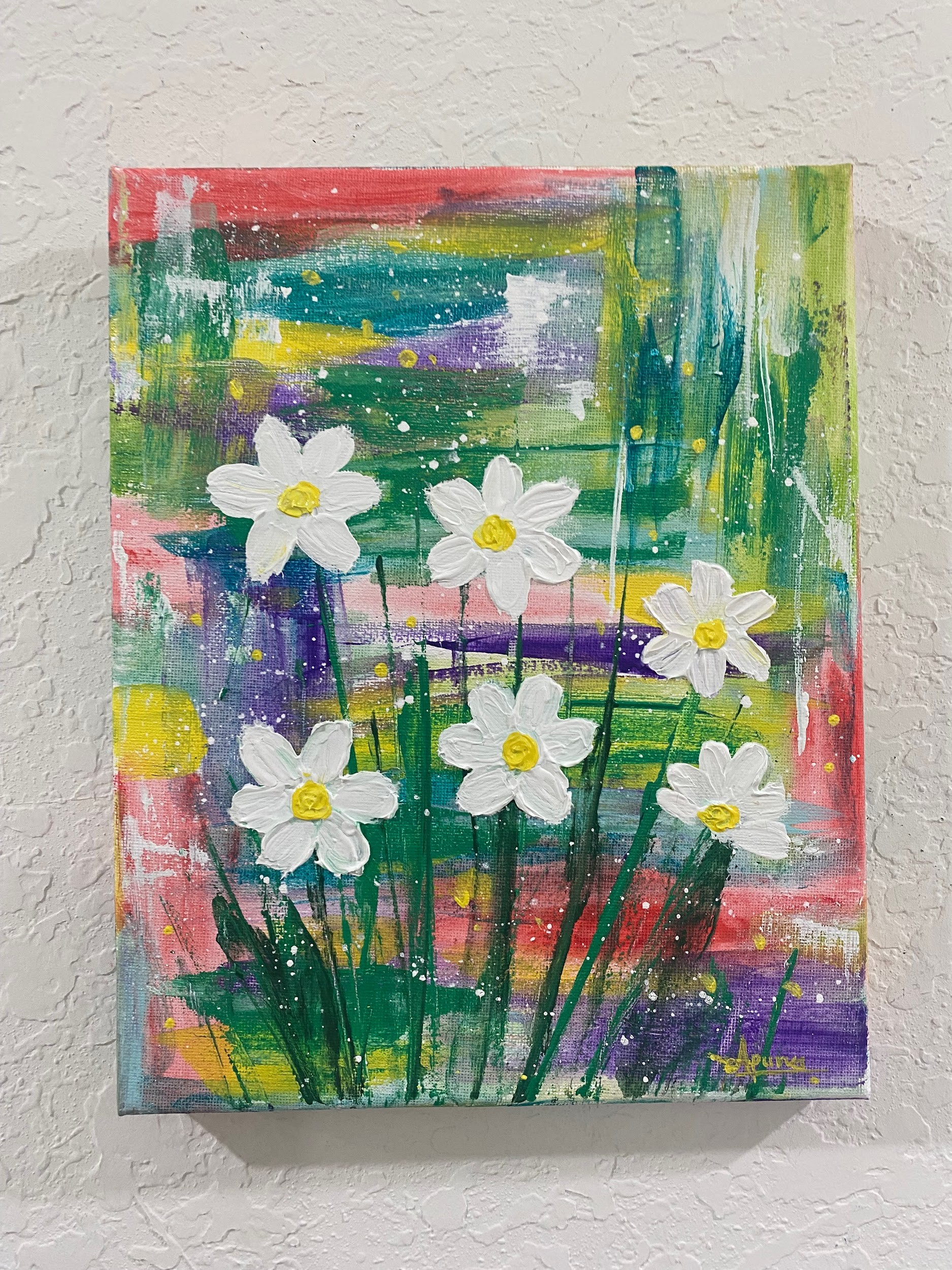 8 x10 Textured acrylics, Canvas Board, Floral