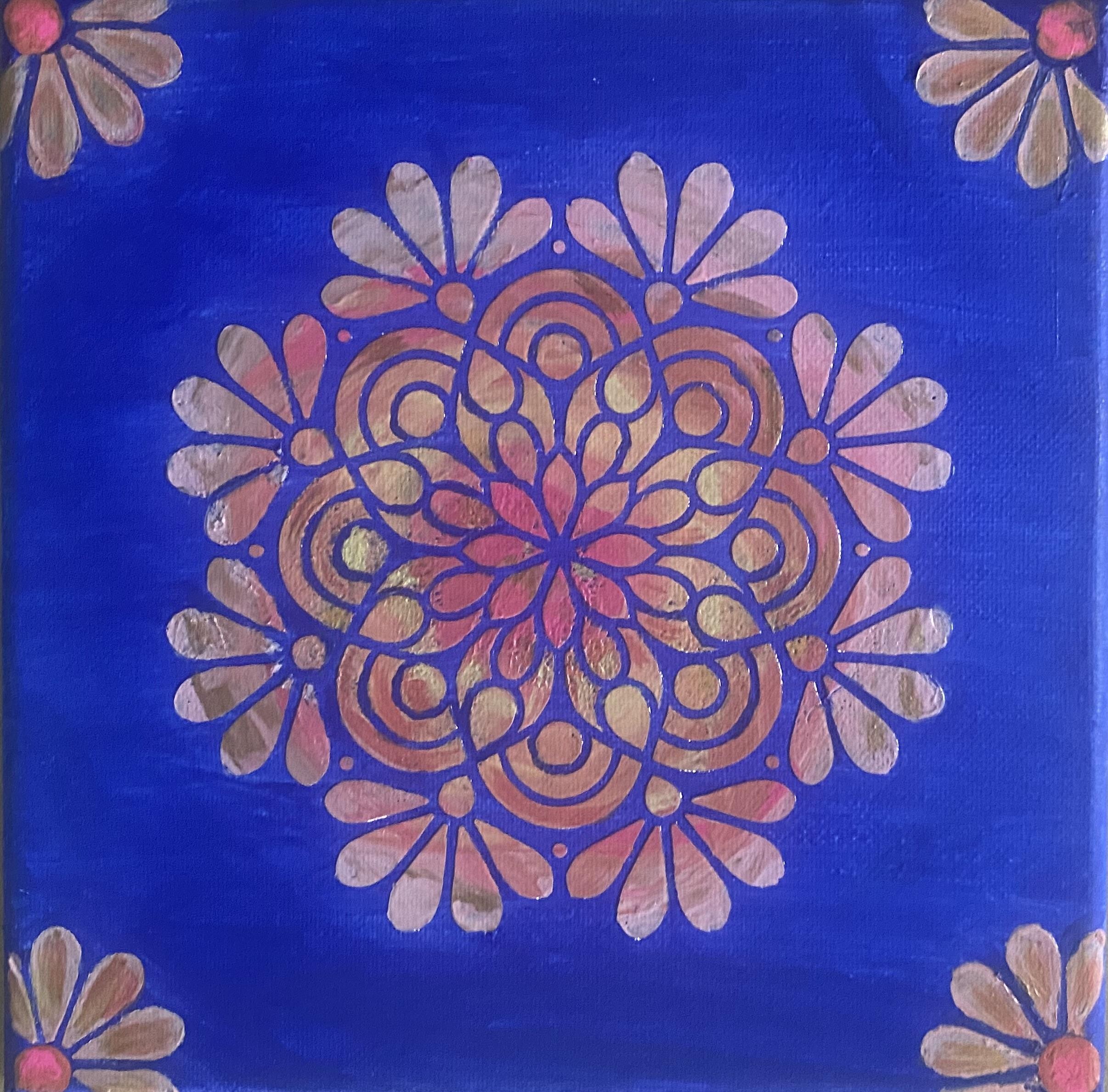 Textured acrylics, Canvas Board, Mandala